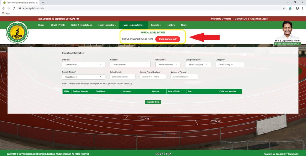 క్రీడలలో పాల్గొనటకు online నమోదు చేసుకునే విధానం :